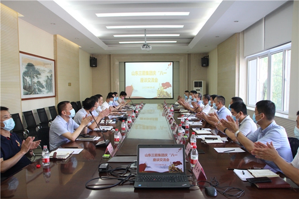 8月1日上午,為慶祝建軍93周年,山東三箭集團黨委舉辦大型慶“八一”專題活動,特邀山東省住房與建設廳二級巡視員都昌林來企業(yè)座談并作報告。三箭集團優(yōu)秀軍轉干部代表、工會主席黃建華主持,集團黨委及各子公司有關領導、政工干部,全體在崗復轉軍人約150人參會。
