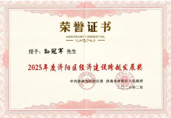 山東三箭建設工程股份有限公司憑借出色的發展表現,榮獲“2025年度濟陽區經濟建設跨越發展企業”稱號;三箭集團(三箭股份)黨委書記、董事長孫冠軍同志同時獲評“2025年度濟陽區經濟建設跨越發展企業家”稱號。此次表彰,是對三箭集團扎根濟陽、積極投身區域經濟高質量發展所作出努力的高度認可與充分肯定。